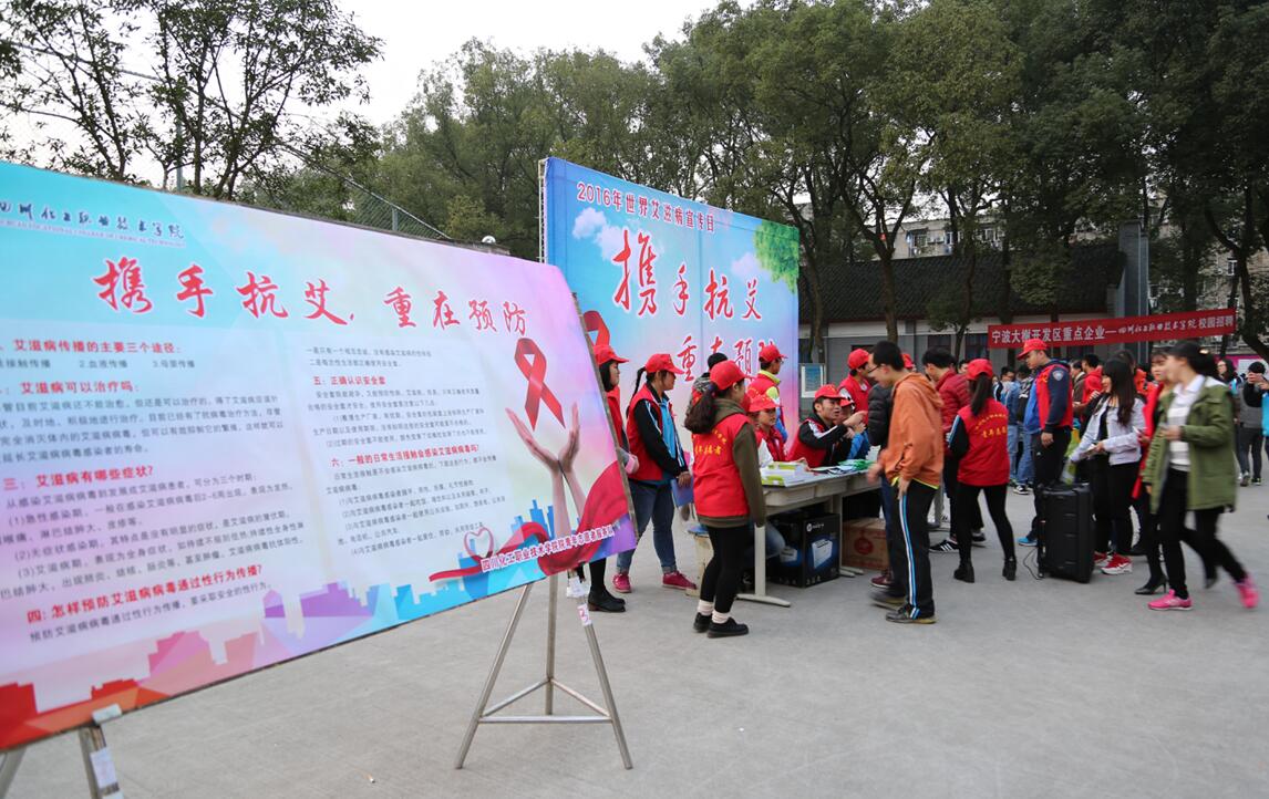 2016年12月1日是第29个“世界艾滋病日”,今年的宣传主题是:携手抗艾 预防为主。为进一步动员全社会共同关注和参与艾滋病的防治工作,增强广大师生的防病意识和自我保护能力,保护广大青少年的身心健康。11月30日下午,由学院学生处、团委、后勤服务处健康教育中心主办,江阳区疾控中心协办的艾滋病防控知识宣传活动在学院食堂前广场顺利开展。活动以发放宣传资料和有奖知识问答形式进行。学院有关领导和相关部门同志到现场指导并参与宣传活动。活动现场,气氛活跃,师生员工积极参与,收到了良好的效果。