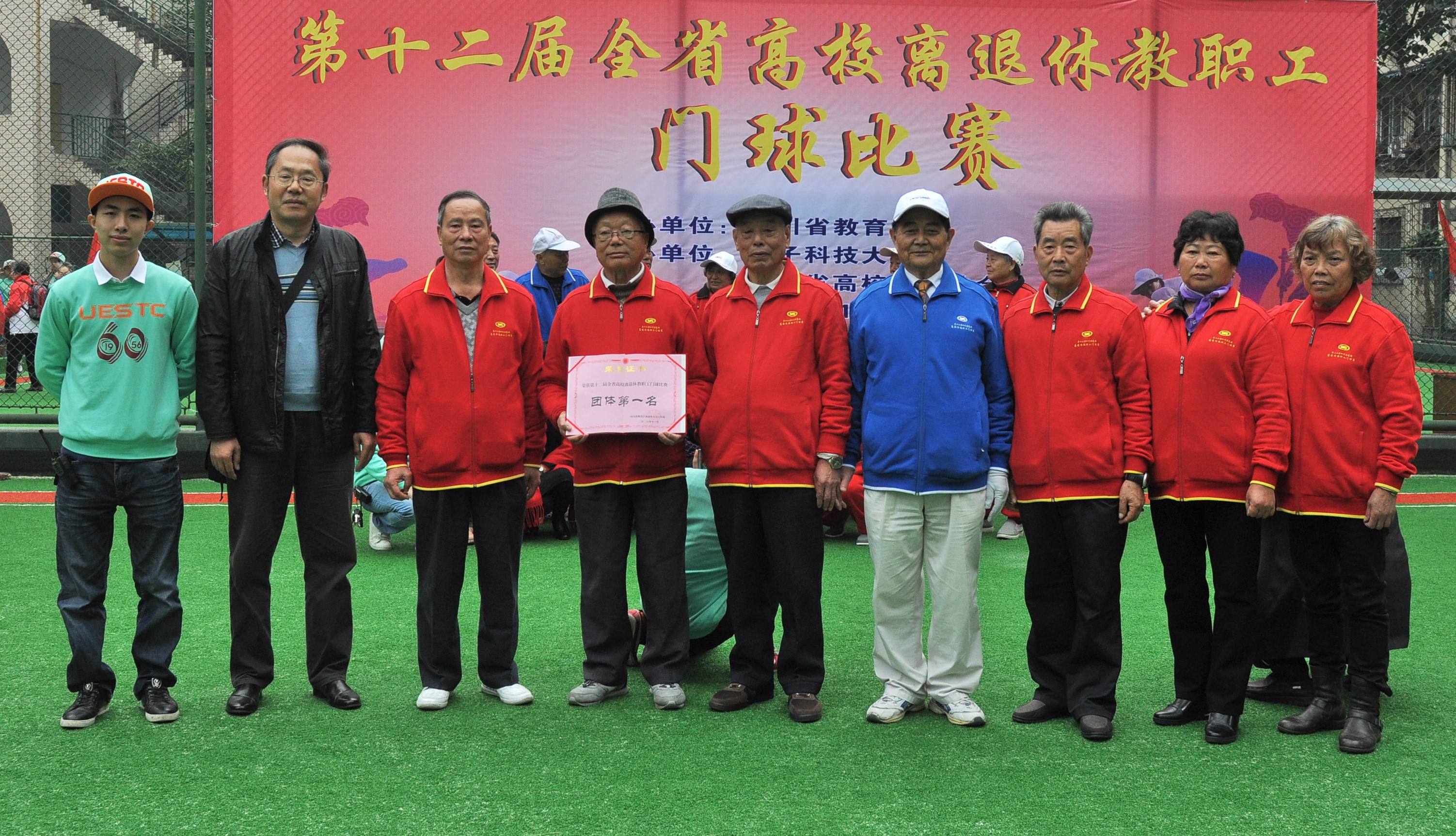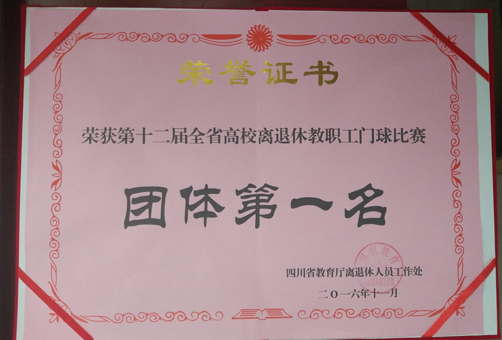 为发展老年人体育运动,展示老年人精神风采。11月10日,由四川省教育厅、四川省高校门球协会主办、电子科技大学承办的四川省第十二届高校离退休教职工门球赛在成都市顺利举办。我院离退休老同志门球队一行9人代表我院参赛。经过2天的激烈角逐,我院离退休老同志门球队取得团体赛第一名的喜人成绩。
