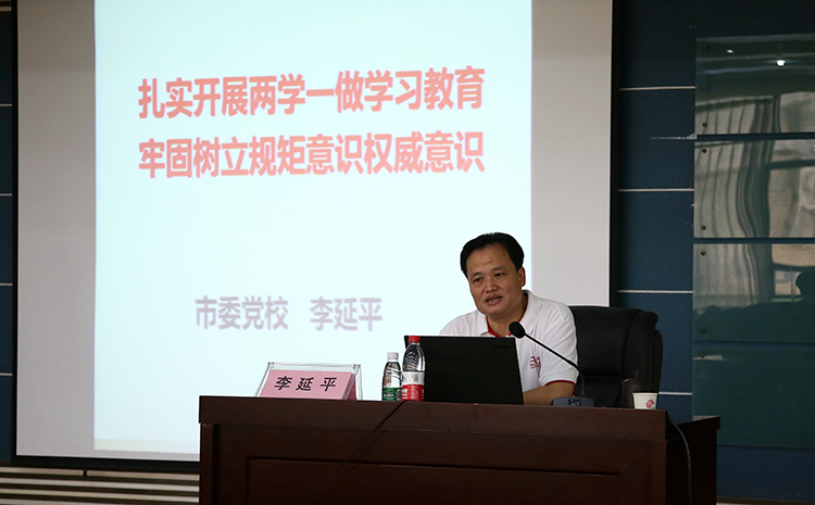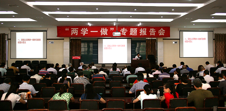为深入开展“两学一做”学习教育,进一步解决党员队伍在思想、组织、作风、纪律等方面存在的问题,按照学院“两学一做”学习教育工作方案要求,7月7日上午,学院党委在行政楼五楼会议厅举行了“两学一做”专题报告会。泸州市委党校李延平副教授以“扎实开展‘两学一做’学习教育,牢固树立规矩意识权威意识”为主题作了专题报告,学院全体在职党员200余人参加了学习。会议由学院党委副书记、纪委书记、工会主席陈淑娟同志主持。