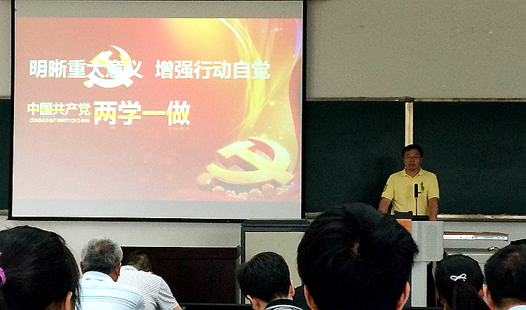 6月15日下午,学院党委委员王志斌副院长在实训楼A区208教室为教务支部全体党员上“两学一做”专题党课。