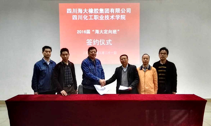 为进一步深化校企合作模式,探索出更多的校企合作新方向,3月21日上午,四川化工职业技术学院“2016级海大定向班”签约仪式在四川海大橡胶集团有限公司隆重举行,此举表明学院与四川海大橡胶集团有限公司的定向培养合作进入了实质性的操作阶段,为学生实习、实训与就业提供了更加广阔的上升空间和发展平台。