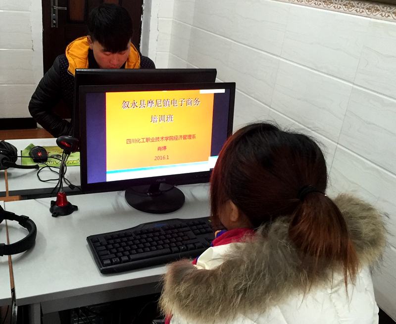 为认真贯彻落实国家、省、市关于加快电子商务扶贫的有关精神和要求,进一步提升农村电子商务网络认知能力,普及农产品电子商务知识与技能,缓解农产品的“卖难”问题,促进农村经济发展以及特色农产品的网络经营效益,学院于2016年1月27日针对摩尼镇特举办了首期“电子商务进农村”专题培训班。