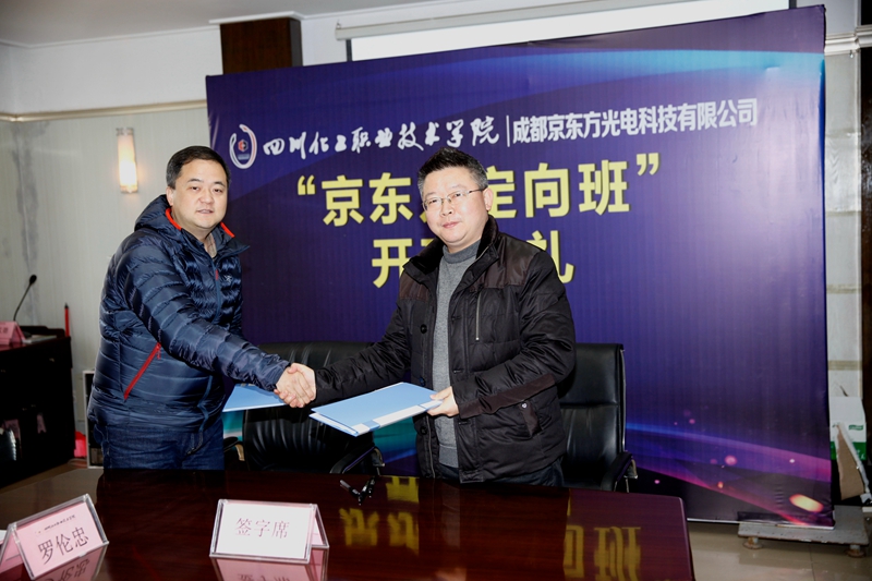 学院一直高度重视校企合作的定向人才培养模式,近年来,学院已经先后与泸州老窖股份有限公司、云天化集团公司、四川天华股份有限公司、华润燃气集团、福建天辰耀隆新材料有限公司、眉山金象股份有限公司、重庆博腾药业、四川海大集团、川汽野马汽车等公司联合开办了近20个定向班。定向班人才培养模式是目前企业与高职院校深度、紧密合作的最有效途径之一,同时也为职业教育开辟了新的思路,创造了学校、学生、企业三赢的局面。此次"京东方定向班"的开班,为我院校企合作模式开辟了新的形式、拓宽了新的领域,这种全新的探索必将为校企合作共赢奠定更加扎实的基础。