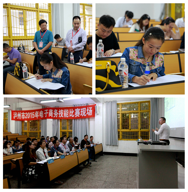 近日,由泸州市总工会、泸州市人力资源和社会保障局、泸州市劳动竞赛委员会主办的2015年泸州市电子商务技能大赛在学院举行。泸州市总工会纪检组长马水利、经济工作部部长赵文铭、泸州市人社局职业能力建设科科长姚波、学院副院长王志斌、院长助理邓启华等领导到比赛现场巡视。期间,王院长代表学院向泸州市总工会再次来院举行竞赛表示了热烈的欢迎,希望双方在政校合作上能秉持互利共赢的长期化原则。
