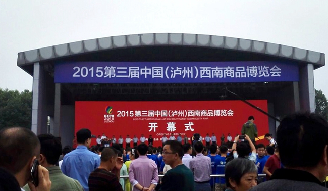 9月16日,以“创新发展、转型升级”为主题的2015第三届中国(泸州)西南商品博览会在四川泸州西南商贸城开幕,省人大常委会副主任李向志讲话并宣布开幕,中国商业联合会副会长傅龙成,省博览事务局局长郑莉、省商务厅副厅长刘祥超等出席开幕式。市委副书记、市长刘强主持开幕式并致辞。本届商会由中国商业联合会、四川省商务厅、四川博览事务局、泸州市人民政府主办,旨在通过高水平、高质量的经贸合作、产品展示、对口洽谈、市场展会互动、信息交流等活动方式,将商博会打造成为西部重要的展会平台,扩大泸州作为川滇黔渝结合部商贸物流中心的影响力和辐射力。