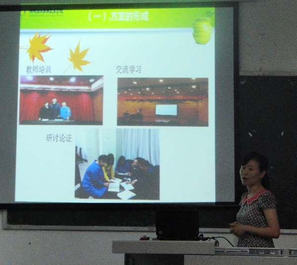 会上,佘未霞老师介绍了英语教研室在化工系、制环系进行练学思拓教改所取得的成绩,分享了她们在“练-学-思-拓”教改过程中的感想和收获,她从实施“练-学-思-拓”的背景及必要性、实施情况、实施效果、发展方向等四个方面介绍了一年来英语教研室实施“练-学-思-拓”所做的一些尝试和遇到的一些困惑。虽然教改存在较大的困难,但改革后的英语课教学很受学生欢迎,反响很好,学生的学习积极性和主动性大为提高,教师教学也比以前较容易。