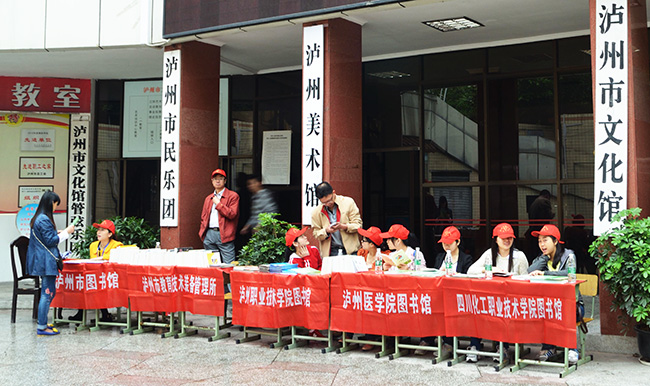 4月23日是第20个“世界读书日”。泸州市图书馆在泸州市江阳艺术宫举行了“读中华经典·美丽我的酒城”、“泸州市市直机关单位第20个世界读书日经典诵读比赛”,我院图书馆积极参与,并向市民宣传图书馆服务和倡导全民阅读,欢迎市民来我院图书馆看书学习。