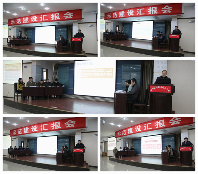 汇报会最后,杨宗伟院长以“凝心聚力建示范,攻坚克难强内涵”为题,从保障措施、建设情况、建设成效、资金使用等方面对学院省级示范院校建设项目的总体情况进行了介绍。他希望全院师生员工继续深入学习、全面参与、通力合作,做好示范验收的各项准备工作,确保顺利通过终期验收,实现建成省级示范高职院校的目标。