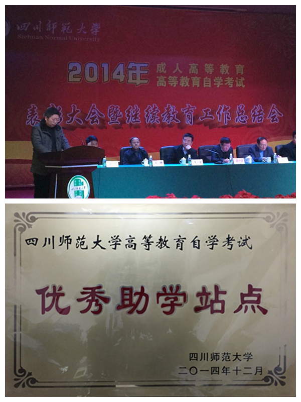会上,我院获得四川师范大学自学考试优秀助学站点授牌,继续教育处刘真如处长代表获得表彰的十个优秀助学站点进行了发言。