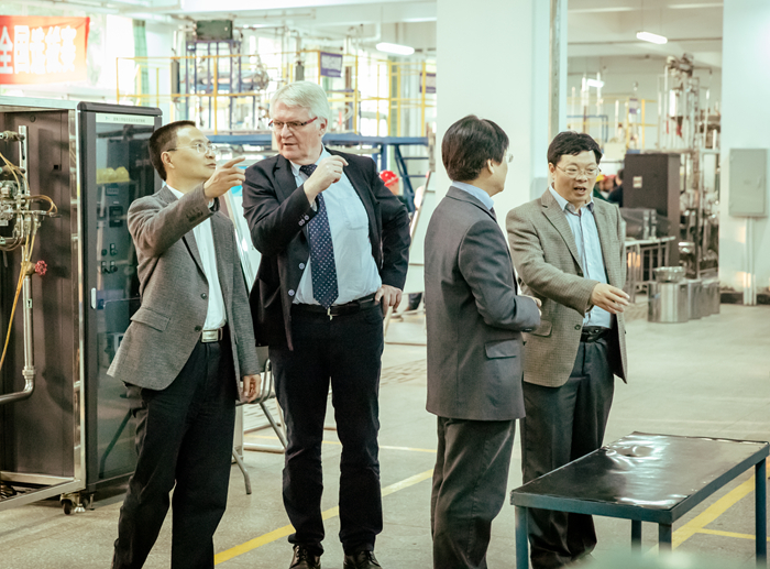 座谈会结束后,杨宗伟院长陪同Juergen Ebkemeier一行,参观了学院实训中心。客人对我院实训中心的建设理念和水平表示了高度赞赏。