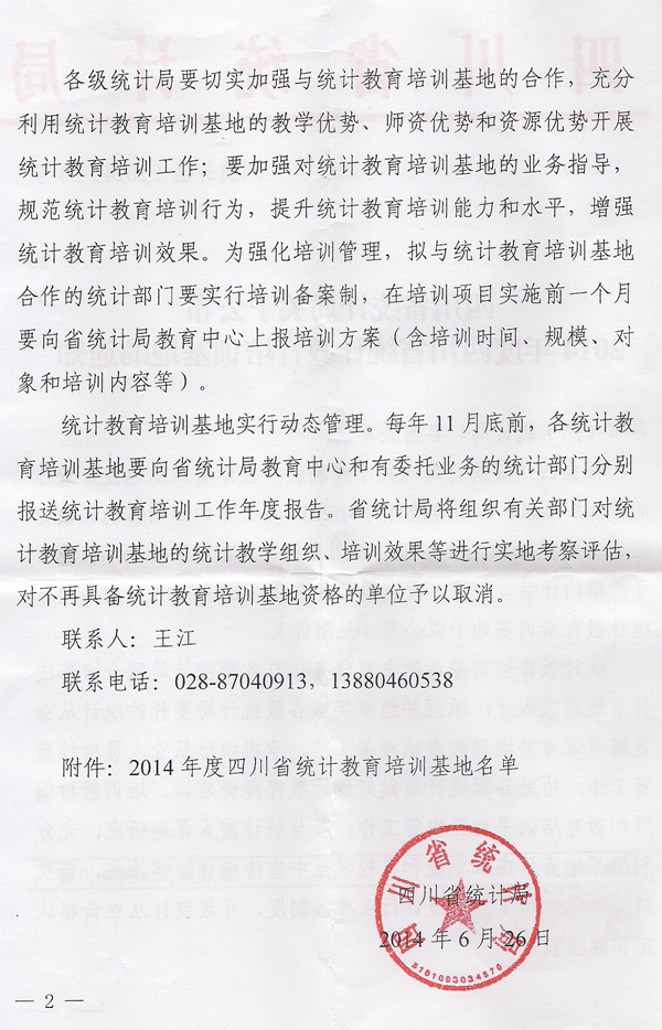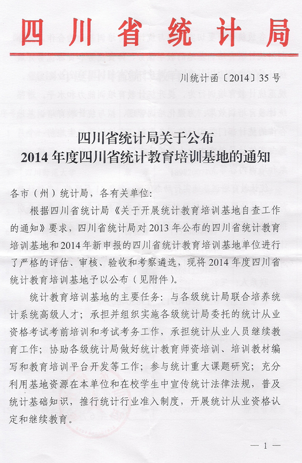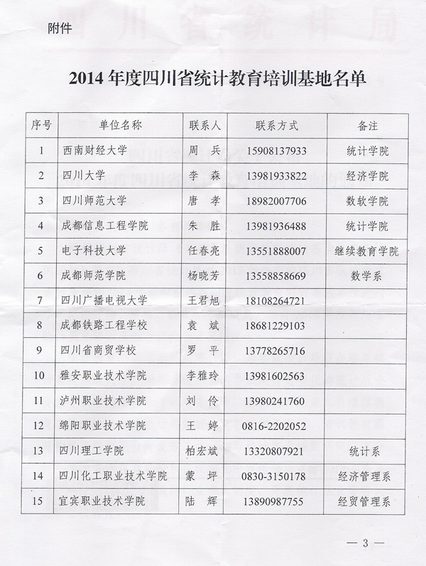 日前,四川省统计局公布2014年度四川省统计教育培训基地,经泸州市统计局严格的评估、审核、考察遴选推荐的四川化工职业技术学院获省统计局批准认可。目前,四川的省级统计教育培训基地共15个,在省会城市以外的仅6个。