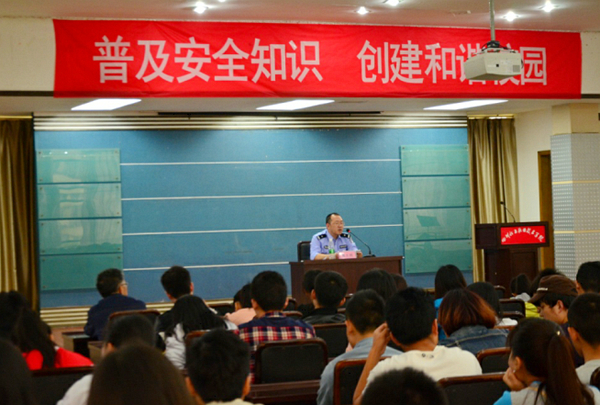 魏永刚所长从学校安全管理工作谈起,通过大量实际案例,生动、形象的列举了我们身边存在的种种安全隐患,提出了“普及安全知识,创建和谐校园”的校园安全防范理念,并从人身安全、财产安全和消防安全等方面向同学们提出了许多宝贵的意见和建议。