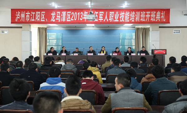 2月19日,泸州市江阳区、龙马潭区2013年退役士兵职业教育和技能培训班开班典礼在我院隆重举行。泸州市民政局、泸州市财政局、泸州市军分区、泸州市江阳区民政局、龙马潭区民政局、泸州华储物流人力资源管理有限公司,以及学院领导和相关教学部门负责人出席了开班典礼。开班典礼由蒲开伦副院长主持。