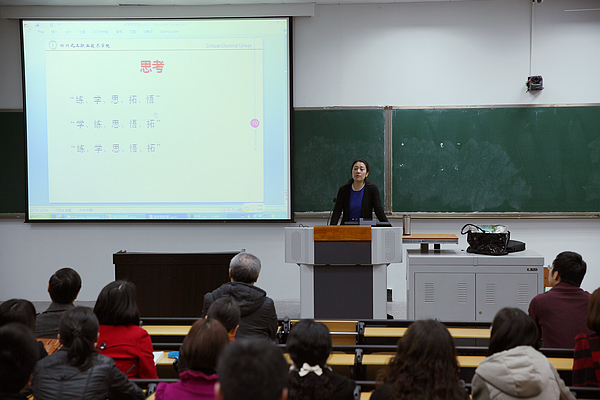 《大学生素质训练》课程是一门省级精品课程,经过多年的建设和完善,在2013年成为了四川省高职院校中唯一一门被推荐参加全国精品视频开放课程评选的课程。在讲座中,刘教授简要地介绍了课程设计的整体思路、课程沿革和改革思路,重点对课程中提炼出来的“练、学、思、拓、悟”五步教学法进行了解读。她就这五者之间的关系进行了剖析,并以呐喊训练、博物馆讲解等实际案例生动地为大家介绍了五步教学法在课程教学中的应用以及良好的教学效果。刘教授还与到场的教师共同探讨了该教学方法与专业课程的对接以及可能存在的问题,对该教学方法的推广与大家进行了沟通。