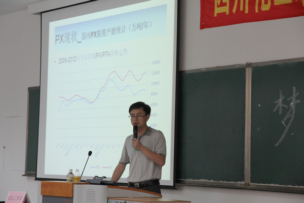讲座中,叶总围绕当下舆论热点PX项目展开讲解,为师生讲述了PX项目的概述、来源和用途,并结合社会现象分析了PX项目的舆情。