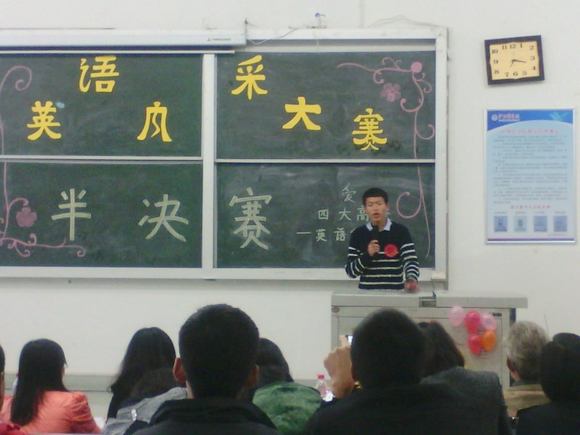 2013年11月2日下午,一年一度的泸州市四大高校英语风采演讲大赛半决赛在泸州医学院城北校区鸿文楼举行。在英语教研室老师组织以及学院英语之家的宣传下,我院选出了10名选手参加了此次半决赛。比赛由泸州医学院英语俱乐部筹办。