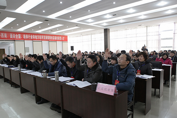 会上,学院院长杨宗伟作了题为《负重前行 铸就事业发展更大成绩,凝心聚力 续写改革建设新的篇章》的学院行政工作报告。从十二个方面全面客观地总结了学院自创建高职以来在教学科研、科学管理、人才培养、招生就业、安全稳定等各项工作。报告指出,在省经委、省教育厅、泸州市委、泸州市人民政府的领导、关心和支持下,学院党政领导班子带领全院教职工,负重前行、攻坚克难,成功实现了学校“升格高职”、“评估创优”、“建设示范”的三大跨越。报告明确了下一步的工作思路,确定了今后一段时间学院在文化建设、人才强校、质量建设、管理运行机制改革、素质教育、示范建设、环境改善等方面要继续实施的七项重点工程,以及“学院搬迁论证”、“六十周年校庆”两大主要工作。报告中指出,学院将立足化工服务社会、立足四川面向全国,以省级示范性高职院校建设为契机,实现人才培养、文化传承、创新知识、服务社会四大功能协调发展,进一步提升学院综合办学实力。