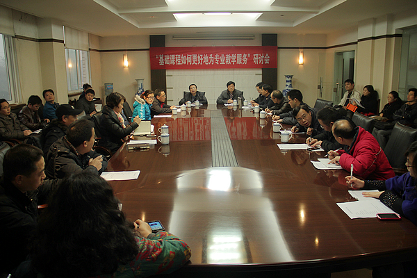 此次会议主要针对数学、英语、体育三门基础学科进行讨论。会上各系部主任、教研室主任及专业建设负责人分别发言,围绕“基础课程如何更好地为专业教学服务”纷纷提出自己的见解。