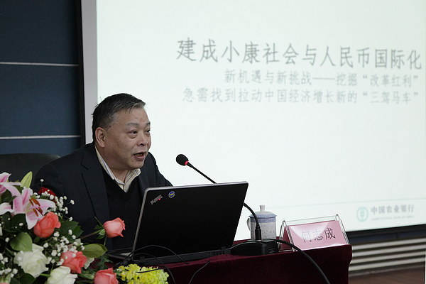 12月19日下午,中国农业银行总行高级经济师、高级专员、知名经济学家何志成教授来到学院,以“建成小康社会与人民币国际化”为主题,为全体教职员工做了一堂精彩的报告会。
