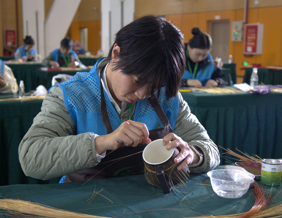 本次大赛以“绿竹青藤·匠心蜀韵”为主题,由省林草局、省总工会联合主办,吸引全省50余名竹藤技艺高手齐聚一堂,展开为期两天的技艺切磋与文化展示。赛场内,选手们神情专注,指尖竹篾翻飞,将传统编织技法与现代创意设计相融合,在规定时间内创作出竹编画、实用器具等多类作品。赛场外,纳溪本土竹产业商户纷纷设摊展销,吸引游客驻足体验。