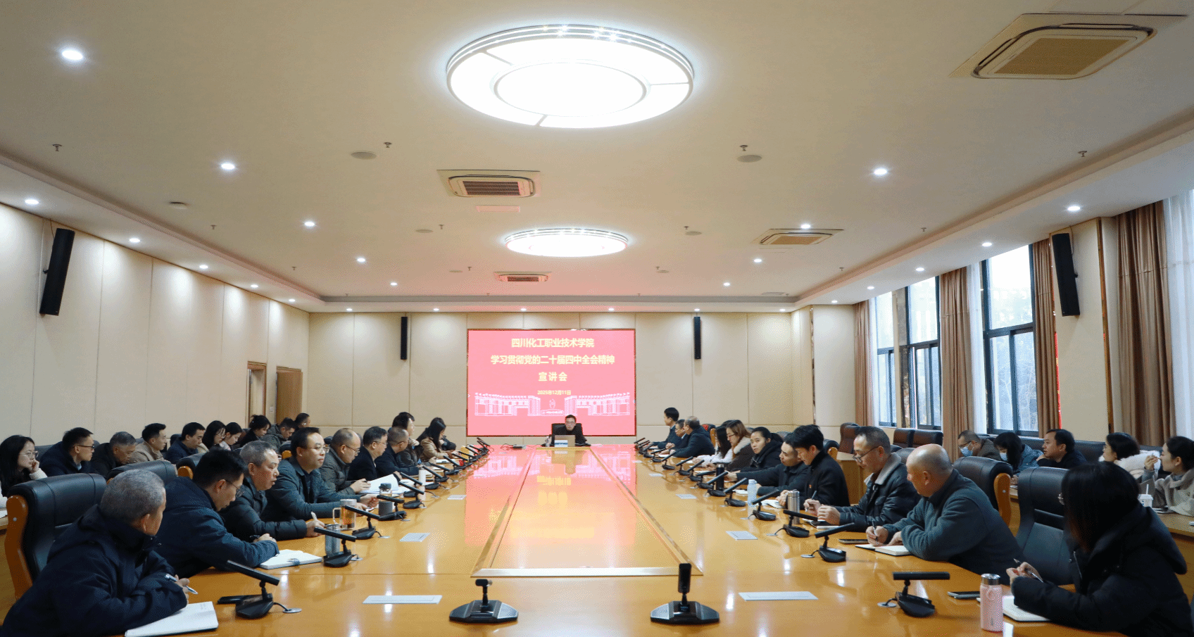 郑辅春强调,学习贯彻党的二十届四中全会精神是当前和今后一个时期的首要政治任务。要按照党中央、省委和市委统一部署,全校上下要以高度政治自觉推动党的二十届四中全会精神在学校落地生根。一要深学细悟,统一思想。通过专题学习、“三会一课”等形式,原原本本学习全会精神,确保师生思想与行动统一到党中央决策部署上来;二要知行合一,融入实践。将全会精神与学校“十五五”规划编制结合,融入课堂教学、科研创新,激发师生干事创业热情;三要担当作为,服务大局。主动对接国家战略与区域发展需求,在人才培养、社会服务中展现“化院担当”,为中国式现代化贡献化院力量。
