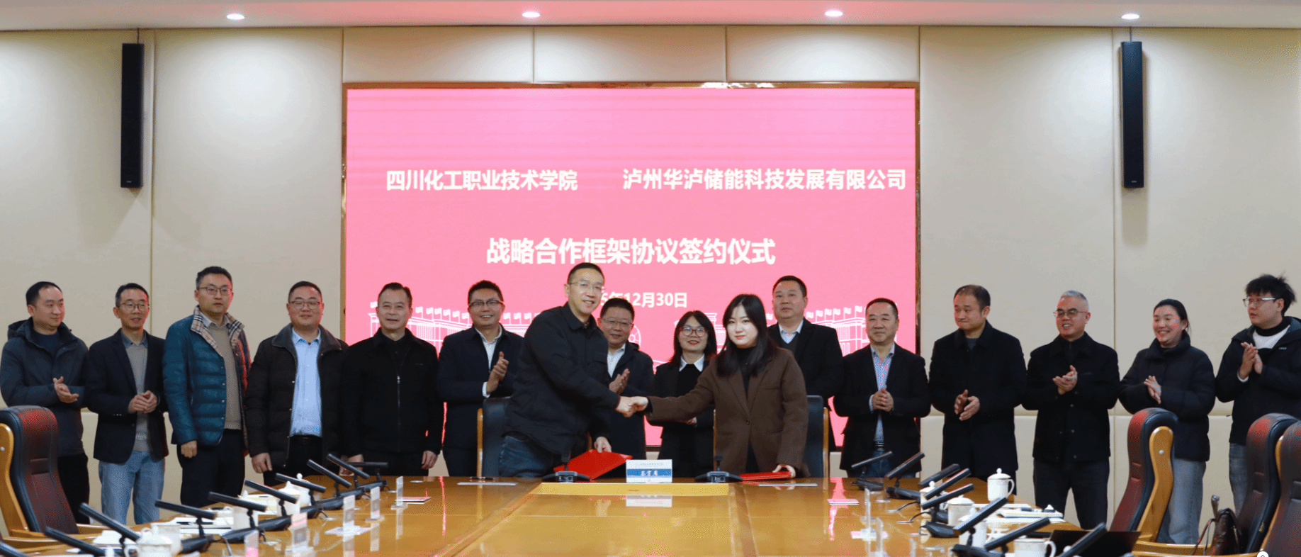 在双方与会人员的共同见证下,徐淳与叶思澌共同签署了《四川化工职业技术学院—泸州华泸储能科技发展有限公司战略合作框架协议》。