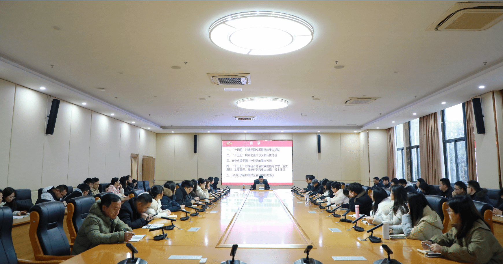 邓华云围绕党课主题,结合自身学习感悟,从两个方面作了系统讲解和深入阐释。第一方面,主要从“十四五”时期我国发展取得的重大成就、“十五五”规划的重大意义和历史地位、党中央关于国内外形势的基本判断、“十五五”时期经济社会发展的指导思想、重大原则、主要目标、战略任务、根本保证,四个方面为大家进行了深入浅出的讲解。第二方面,他结合学校实际就如何贯彻落实全会精神,提出了三点要求:一要深刻领会全会精神的核心要义、把握教育发展新方位;二要辩证统一“投资于物”与“投资于人”、夯实高质量发展基础;三要聚焦特色与能力建设、谱写高职院校发展新篇章。