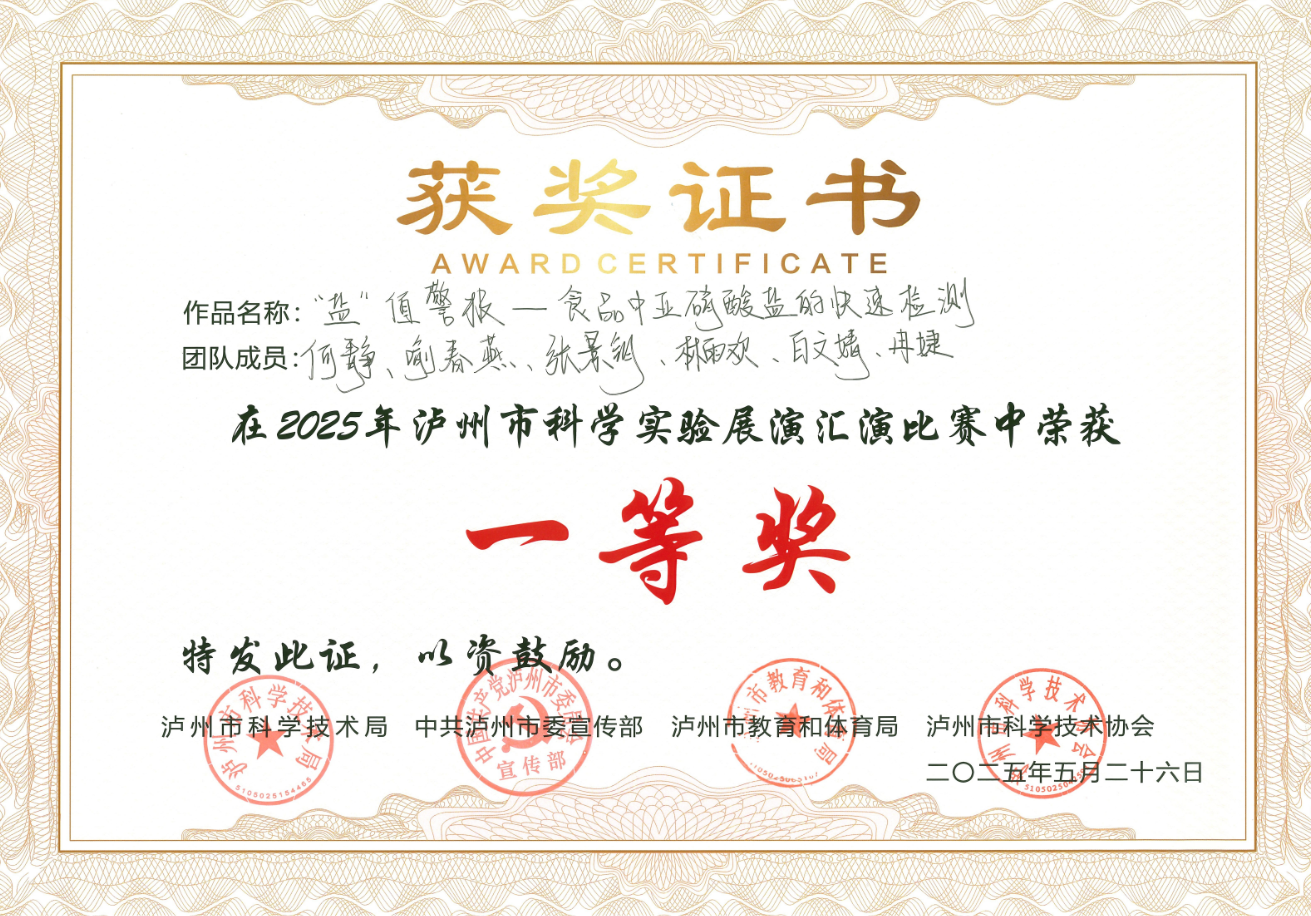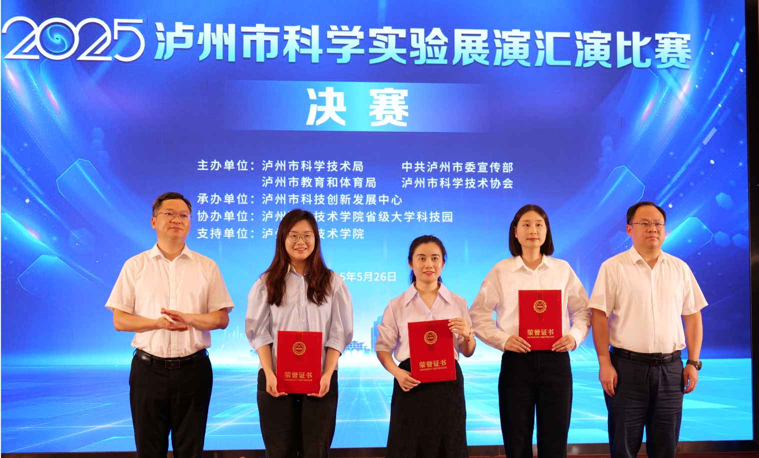 5月26日下午,由泸州市科学技术局、中共泸州市委宣传部、泸州市教育和体育局、泸州市科学技术协会共同主办的2025年泸州市科学实验展演汇演比赛决赛顺利举行。旨在弘扬科学精神、促进学校科学实验进步、提高科普教育水平。通过初赛、复赛的激烈比拼,共有来自全市大、中、小学校的15支参赛队伍进入决赛角逐。学校药品与环境工程学院孙银华老师、邓晓慧老师及川酒学院何静老师分别带领的师生团队参加比赛,并包揽了大赛前三名,全部获得一等奖。