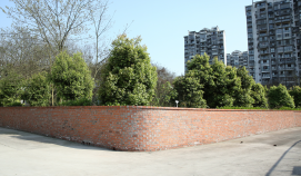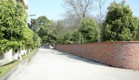 该项目位于四川化工职业技术学院新运动场旁围墙,全长160米、高2米,为红砖结构(实景图如下),学院作刷白处理:
