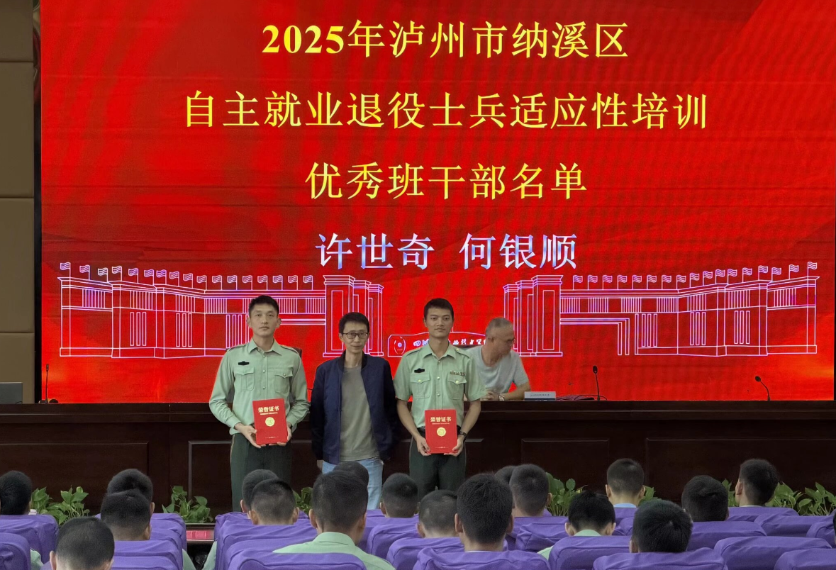 邓家彬向泸州市纳溪区退役军人事务局致以衷心感谢,对其在本次培训筹备与开展过程中的大力支持与悉心指导表示诚挚敬意,向圆满完成培训学习任务、并取得优异成绩的全体学员表示热烈祝贺,勉励大家将所学所获转化为推动自身发展、助力地方建设的实际能力。自主就业退役士兵优秀学员代表何银顺在发言中表示,此次培训让自己明确了转型方向、找准了发展定位。未来,他将立足军旅生涯锤炼的过硬作风与培训所学的实用技能,主动挖掘自身优势、激活发展潜力,以昂扬姿态投身地方经济建设实践。张朝军宣布了培训优秀班委干部与优秀学员表彰名单,向获评优秀的个人表示热烈祝贺,勉励全体学员以优秀为榜样,将培训所学转化为干事创业的实际能力;同时,向为培训高效有序开展付出大量心血的学校师生致以诚挚感谢,肯定了大家在教学组织、后勤保障等工作中展现的专业素养与责任担当。