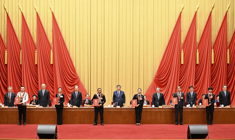 2024年9月27日,全国民族团结进步表彰大会在北京举行。习近平总书记为荣获“全国民族团结进步模范个人”的洛古有格颁奖。