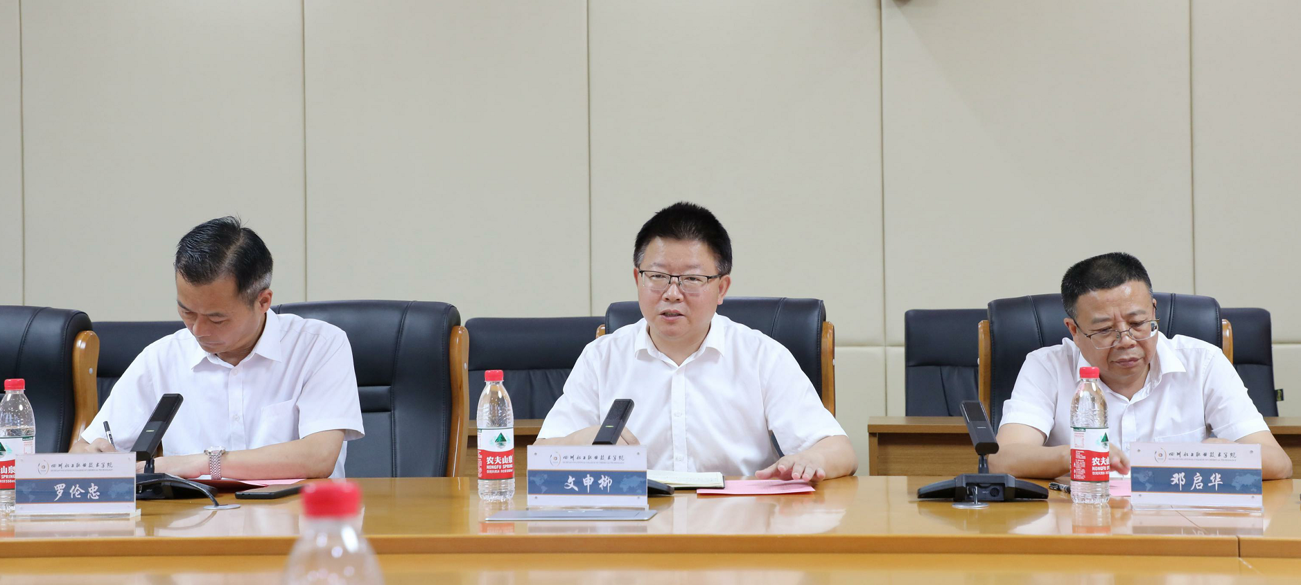 2023年6月30日上午,重庆校友联络处、泸州校友联络处“重庆校友林、泸州校友林”捐赠仪式在学校综合办公楼107会议室举行。重庆校友联络处主任、重庆宝润化工产品有限公司董事长石维胜,重庆校友联络处常务副主任、重庆鹰士达企业管理咨询有限公司董事长唐菠,重庆校友联络处副主任、重庆耀恒橡胶制品有限责任公司董事长邹志强,重庆校友联络处副主任、中国平安人寿保险股份有限公司重庆分公司资深业务总监杨柳,重庆联络处办公室副主任、重庆铭窑商贸有限公司总经理米平;泸州校友联络处主任、泸州斯特普有限公司总经理唐宁,泸州校友联络处副主任、泸州老窖酒城商贸股份有限公司总经理雷惠玲,泸州校友联络处副主任、四川麦田时光影视文化有限公司总经理黄祖华,泸州校友联络处副主任、四川美圆多企业管理服务有限公司总经理唐洪,学校党委副书记、院长文申柳,党委委员、副院长邓启华参加捐赠仪式。仪式由学校后勤服务处处长罗伦忠主持。