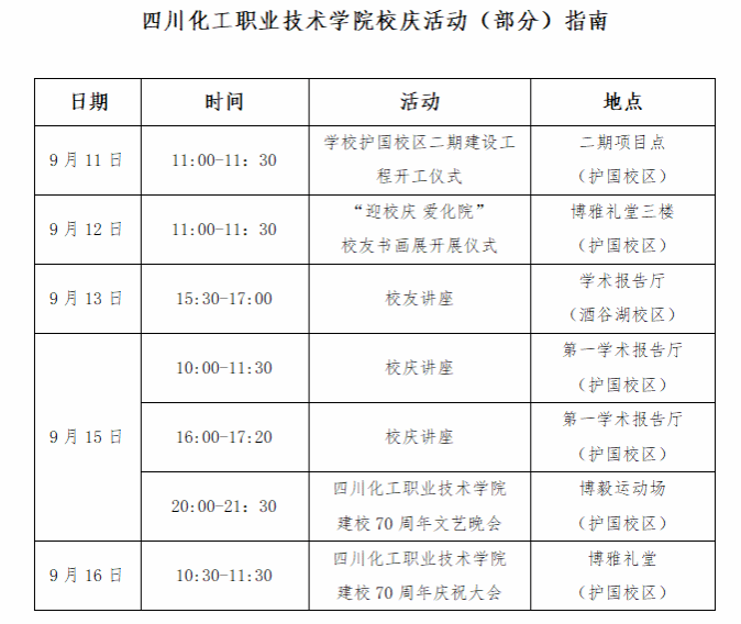 四川化工职业技术学院七十周年校庆公告(第3号)