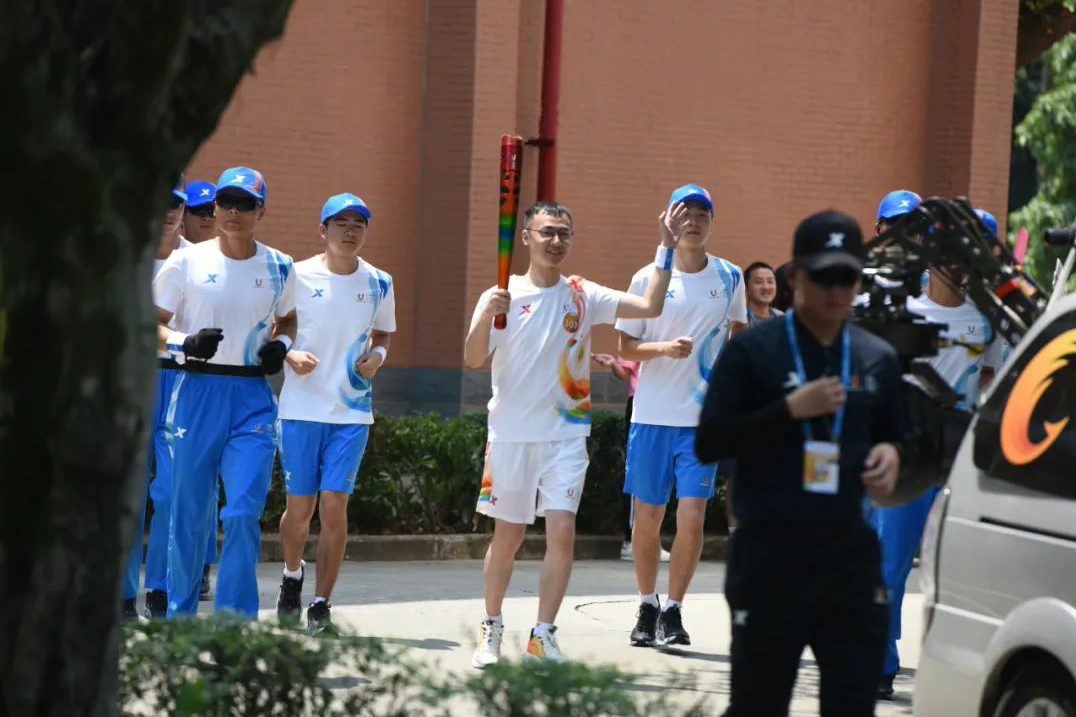 大运火炬点燃的是希望之火、梦想之光,传递的是青春的力量、友谊的光芒,希望同学们能追逐着这束光,用运动塑造坚毅的品格,汇聚成追梦的力量。