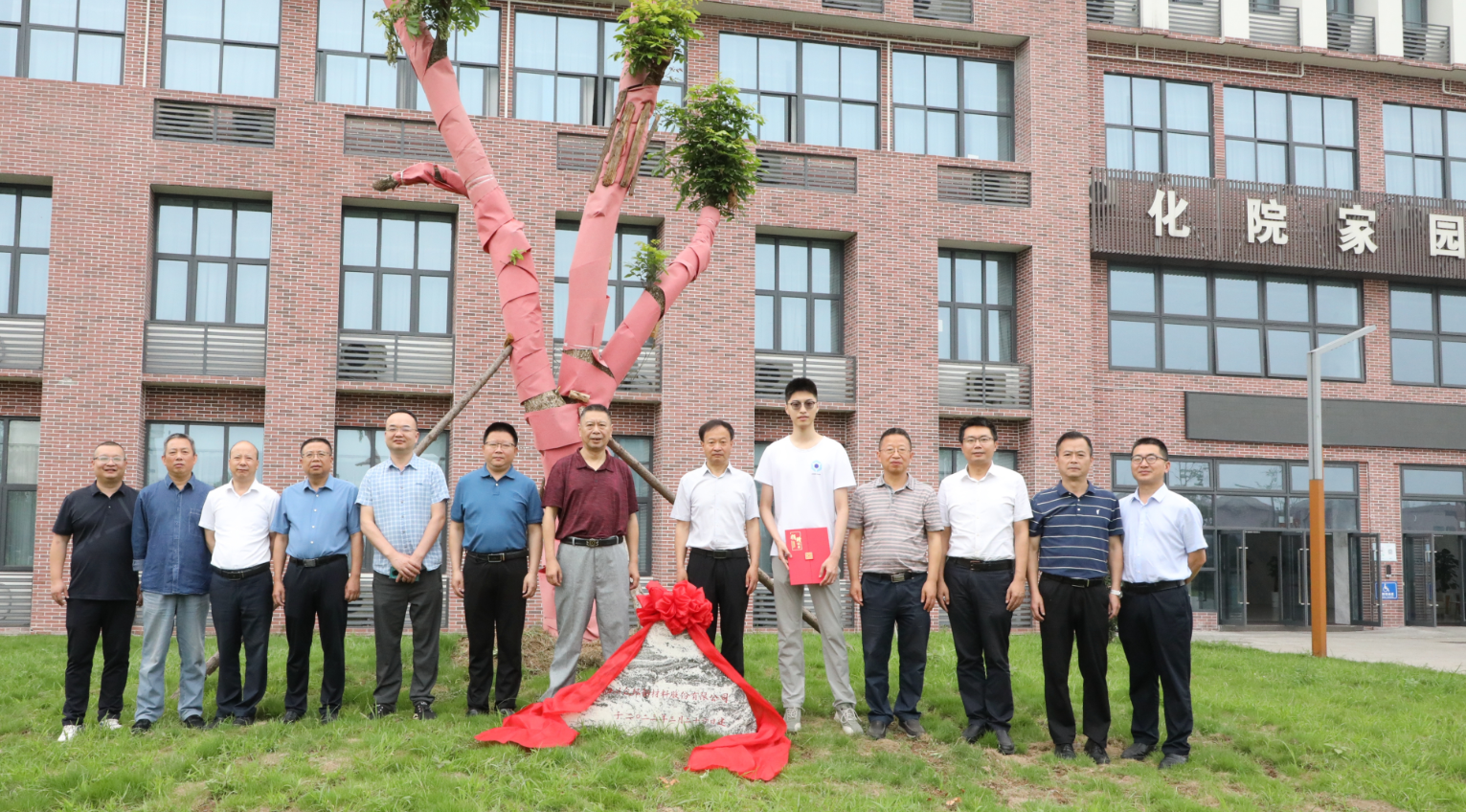 仪式结束后,校企双方领导共同参观了“众邦林”并合影留念。截止目前,我校已经成功吸引省内外十家企业和五个地区校友会进校捐建企业林、校友林,共同营造浓厚的协同育人氛围。